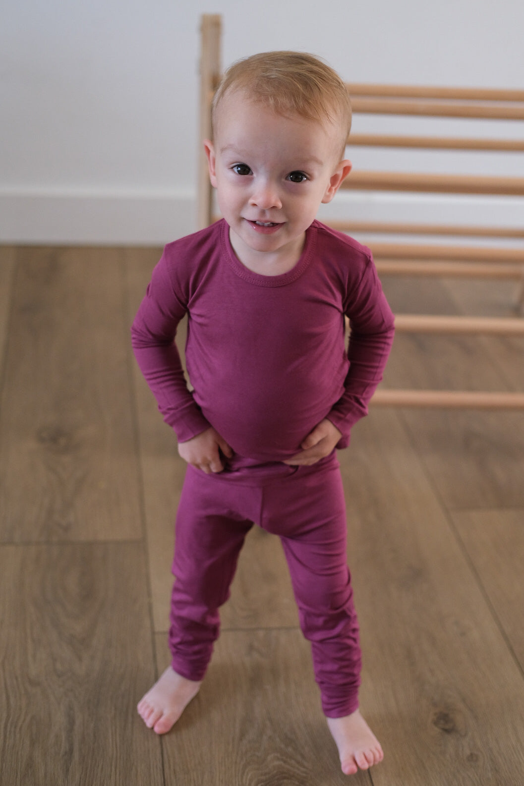 Embrace the spirit of autumn in the Blake. Our dark purple solid which is sure to be a staple at bedtime. The Blake can also easily be matched with a chunky knit or denim jacket on all your fall adventures.